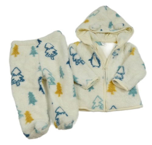 2set - Biela huňatá prepínaci mikina so stromami a kapucí + huňaté polodupky LC Waikiki