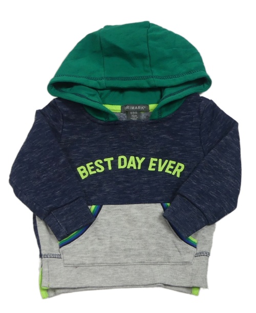 Tmavomodro-sivo-zelená mikina s nápisom a kapucňou Primark