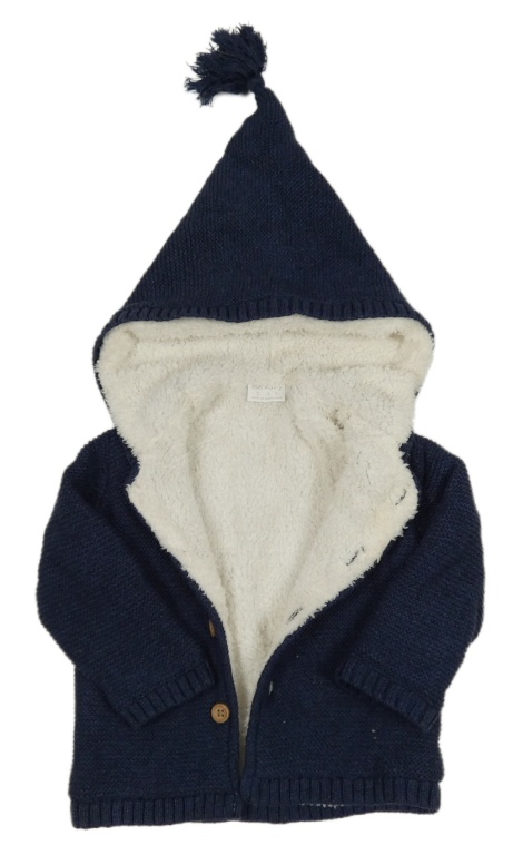 Tmavomodrý prepínaci zateplený sveter s kapucňou F&F