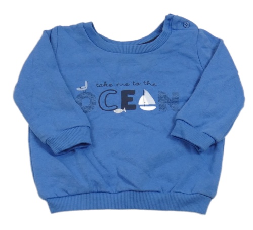 Modrá mikina s nápismi a rackem a lodičkou Matalan
