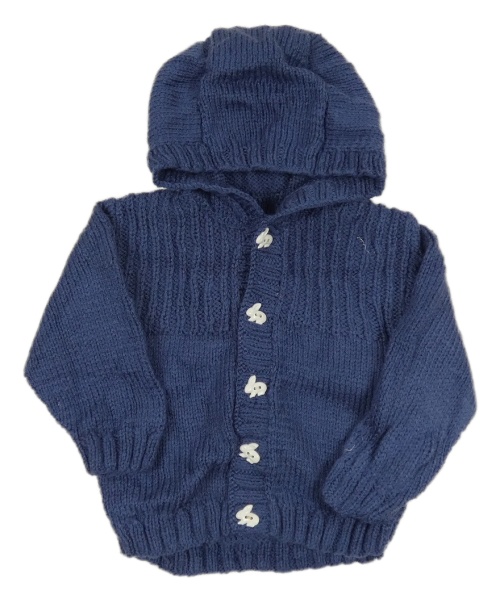 Tmavomodrý prepínaci pletený sveter s kapucňou