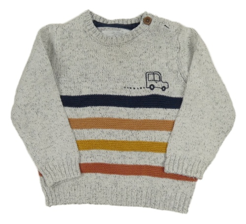 Sivý melírovaný sveter s pruhmi a autom F&F