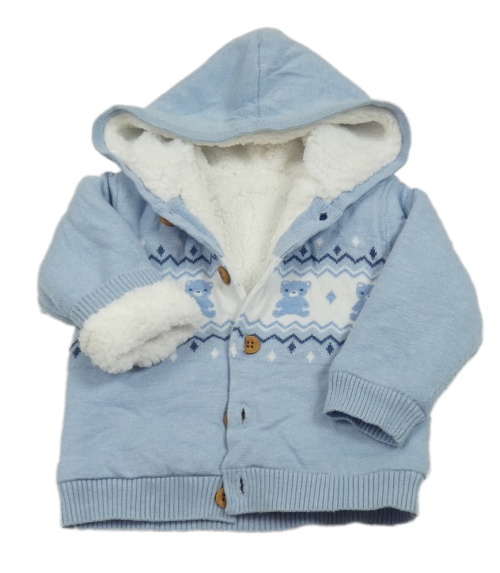 Svetlomodrý prepínaci zateplený sveter s medvedíkmi a kapucňou Nutmeg