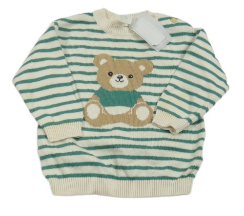 Nové - Krémovo-zelený pruhovaný sveter s medvěďom H&M