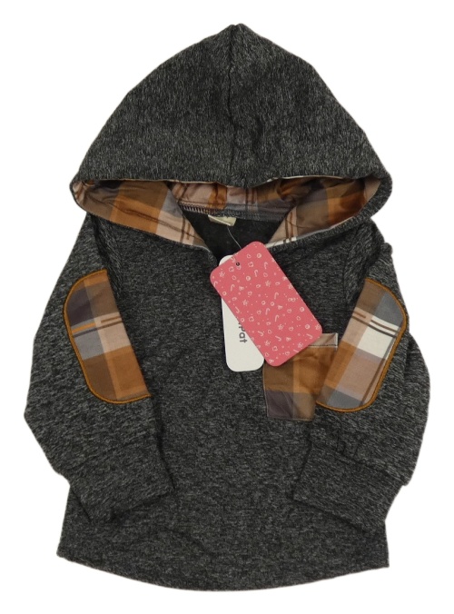 Nové - Sivo-čierna melírovaná thermo mikina s nášivkami a kapucňou