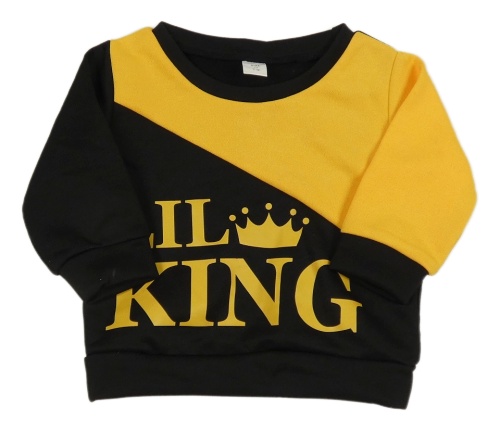 Čierno-tmavožltá mikina s nápismi a korunkou