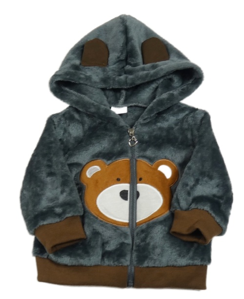 Tmavosivá plyšová prepínaci mikina s medvěďom a kapucňou