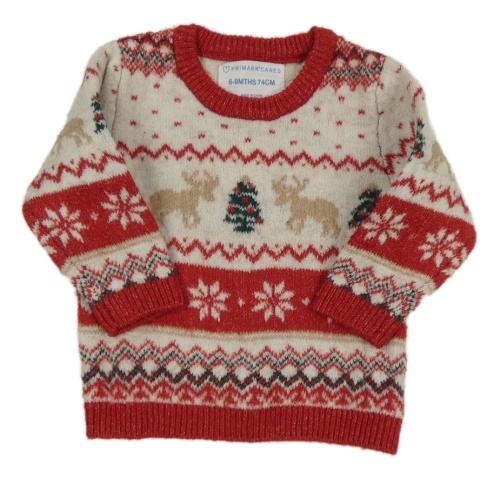 Červeno-béžový vzorovaný sveter s jeleňmi Primark