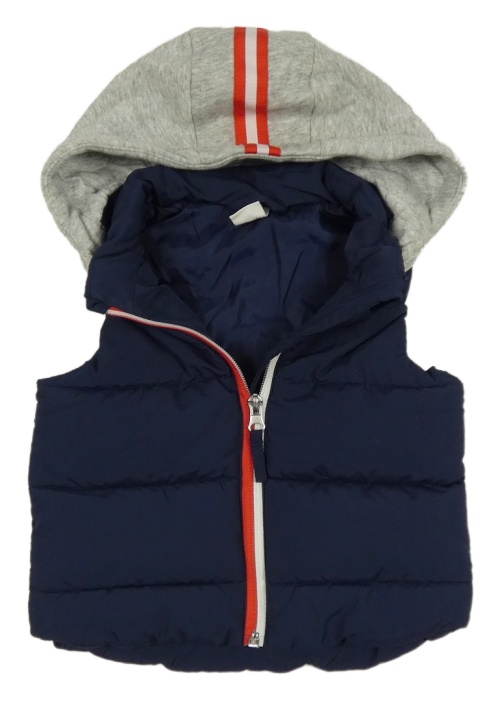 Tmavomodro-sivá šušťáková zateplená vesta s teplákovou kapucňou H&M