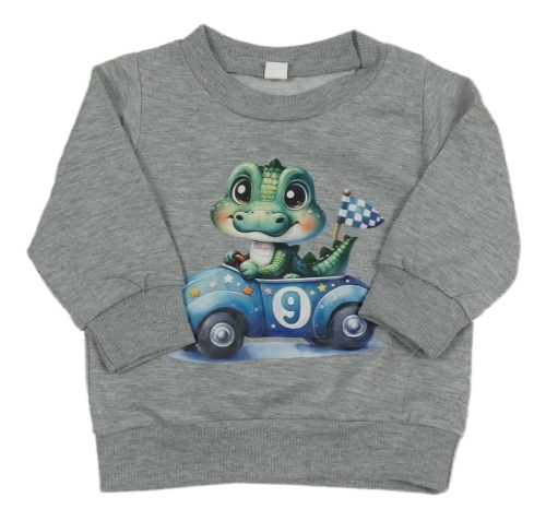 Sivá melírovaná mikina s dráčkem a autíčkom