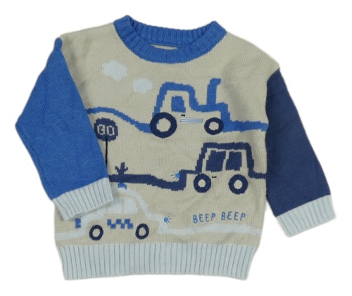 Svetlošedá -modrý sveter s dopravními prostředky Dunnes