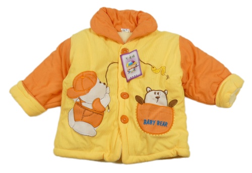 Nové - Žlto-oranžová rebrovaná zateplená prepínaci mikina s medvěďom