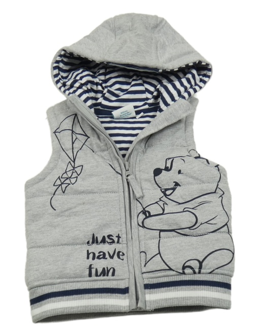 Sivá tepláková zateplená prepínaci vesta s medvídkem Pú a kapucňou Disney