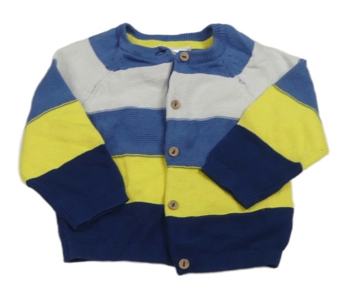 Modro-bielo-žltý pruhovaný prepínaci sveter Ergee