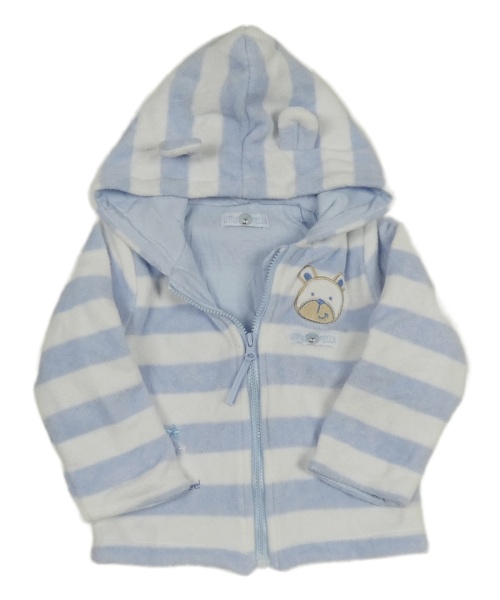 Světlemodro-biela pruhovaná fleecová prepínaci podšitá mikina kapucňou