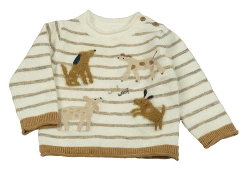 Krémovo-hnedý pruhovaný sveter so psy Nutmeg
