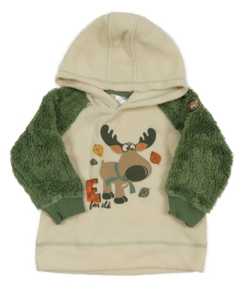 Béžovo-zelená fleecovo/chlupatá mikina so sobom a kapucňou Ergee