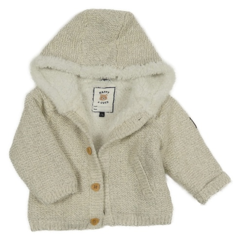 Bielo-sivý melírovaný prepínaci zateplený sveter s kapucňou C&A