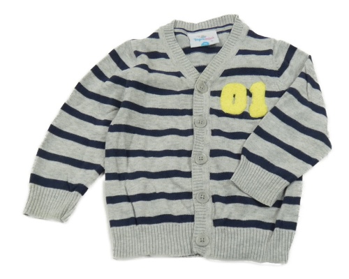 Sivo-tmavomodrý pruhovaný prepínaci sveter s číslem Topomini
