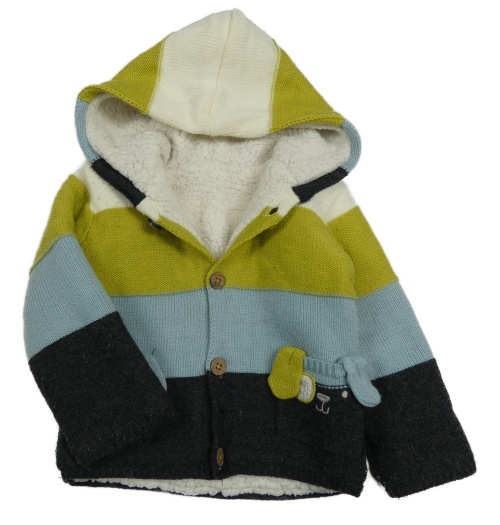 Zeleno-modro-tmavosivý pruhovaný zateplený prepínaci sveter s kapucňou Nutmeg