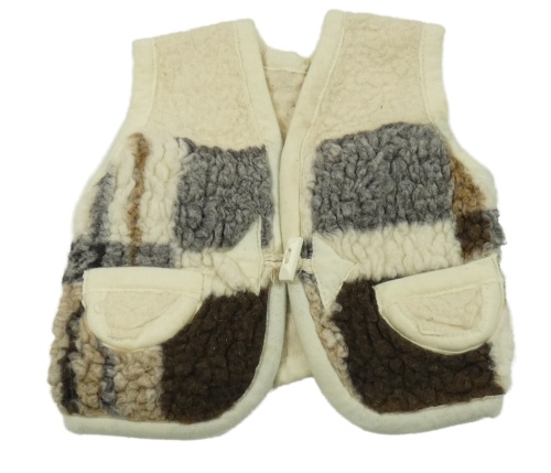 Světlebéžovo-sivo-hnedá huňatá vesta