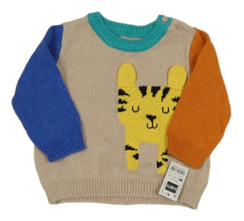 Nové - Béžovo-modro-oranžový sveter s tigrom Dunnes