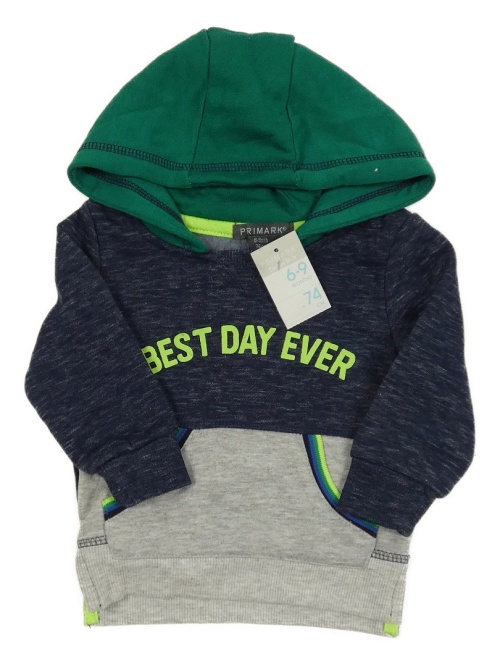 Nové - Tmavomodro-zeleno-sivá mikina s nápisom a kapucňou Primark