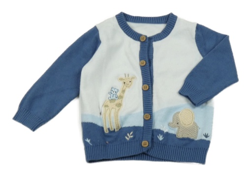 Bielo-světlemodro-tmavomodrý prepínaci sveter so zvieratkami little nutmeg