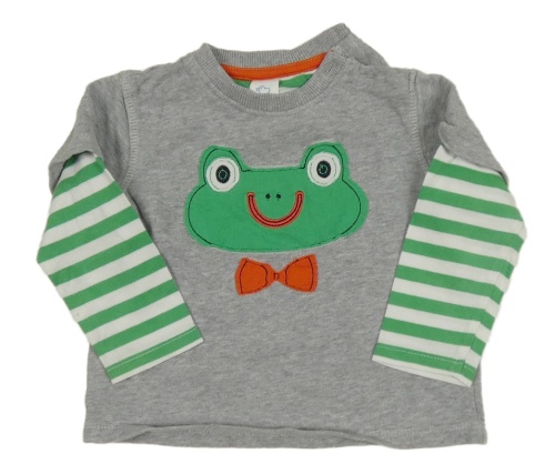 Sivá melírovaná mikina so žabičkou a všitým zeleno/bílým pruhovaným trikem C&A