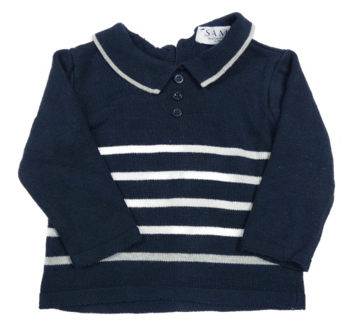 Tmavomodro-sivý pruhovaný sveter s golierikom