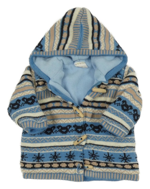 Modro-čierno-bielo-béžový vzorovaný prepínaci zateplený sveter s kapucňou