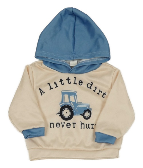 Smetanovo-modrá mikina s traktorom a kapucňou SHEIN