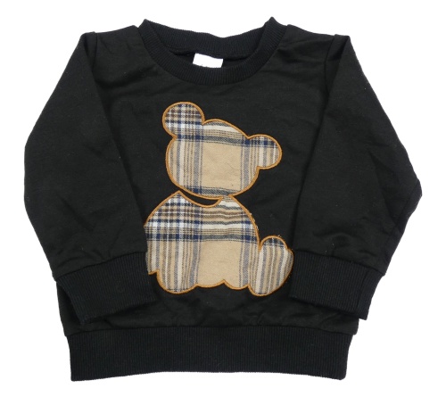 Čierna mikina s kockovaným medvěďom