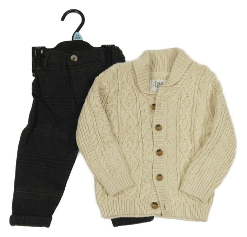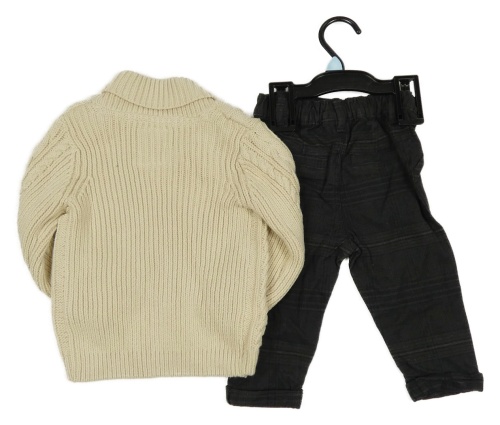 Nové - 2set - Béžový prepínaci svetr + antracitovo-čierne kockované plátenné chino nohavice F&F