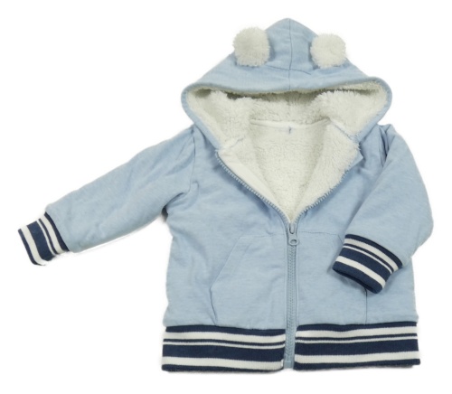 Modro-tmavomodrá melírovaná prepínaci zateplená mikina s pruhmi a kapucňou s uškami