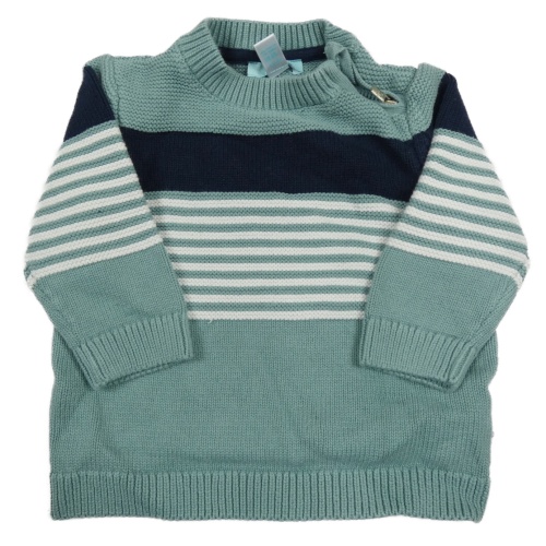 Olivovošedo-tmavomodrý sveter s bielymi pruhmi OBaïBi