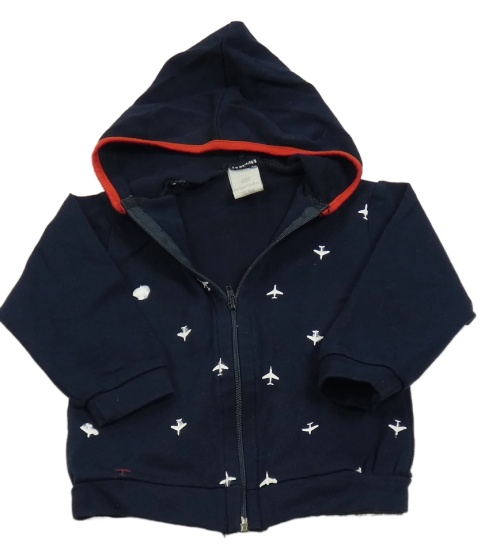 Tmavomodro-červená prepínaci mikina s lietadly