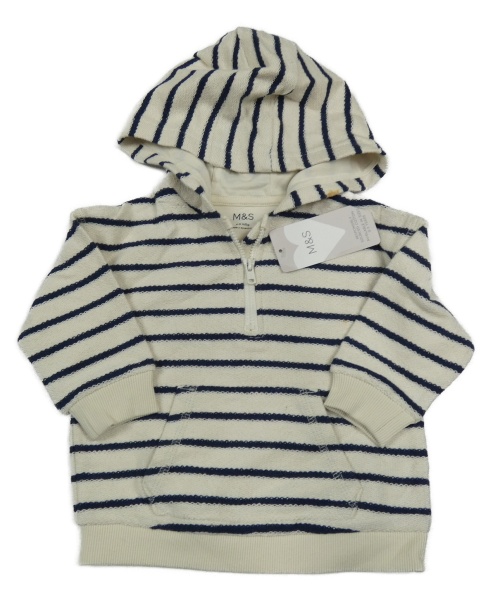 Nové - smetanovo-tmavomodrá pruhovaná mikina s vreckom a kapucňou M&S
