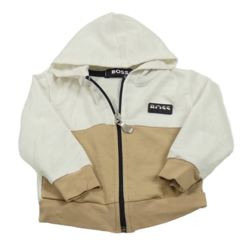 Bielo-hnedá prepínaci mikina s nášivkou a kapucňou