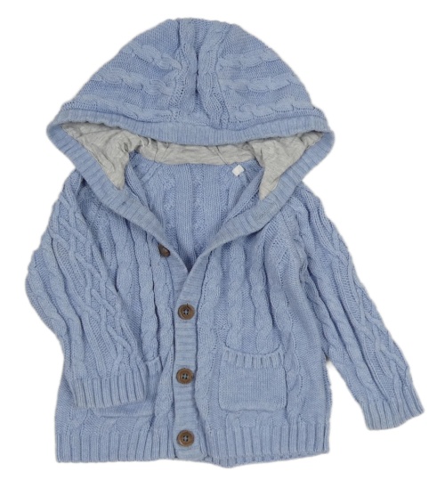Svetlomodrý prepínaci sveter s copánkovým vzorom a kapucňou M&S