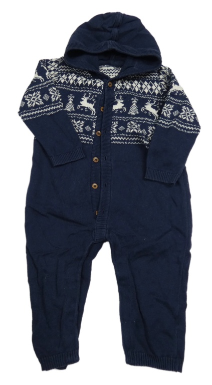 Tmavomodrá vzorovaná pletená kombinéza so zimním motívom a kapucňou George