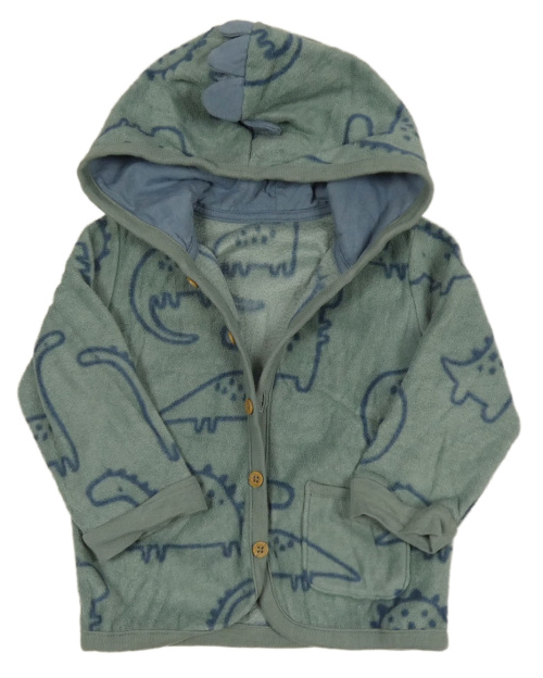 Khaki fleecová prepínaci mikina s dinosaurami a kapucňou s ostny George