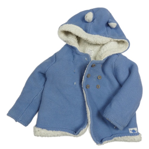 Modrý prepínaci zateplený sveter s dinosaurom a kapucňou s uškami John Lewis
