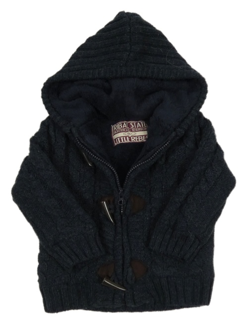 Tmavomodrý vzorovaný prepínaci zateplený sveter s kapucňou Rebel