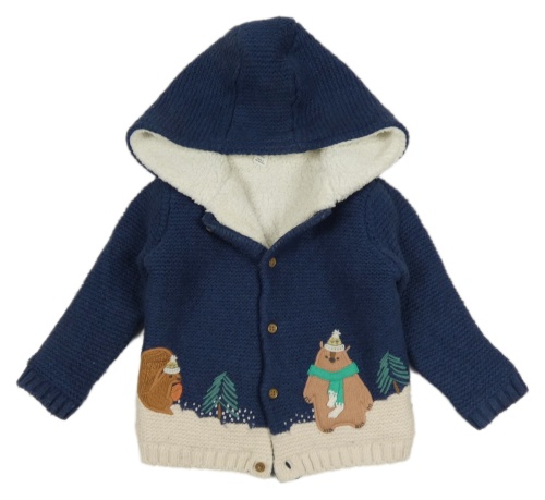 Tmavomodrý prepínaci zateplený sveter so zvieratkami a kapucňou M&S