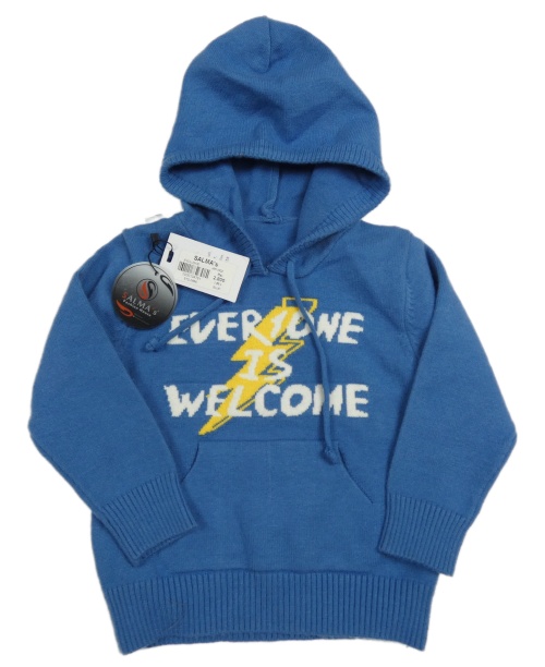 Nové - Modrý sveter s nápisem, bleskom a kapucňou