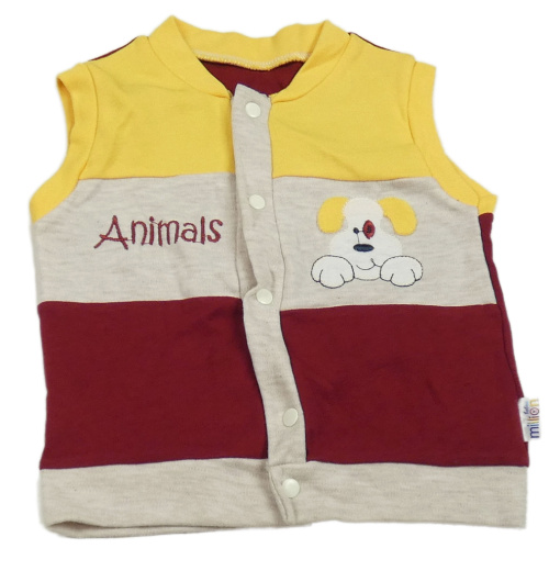 Žlto-sivo-vínová bavlnená prepínaci vesta s psíkom