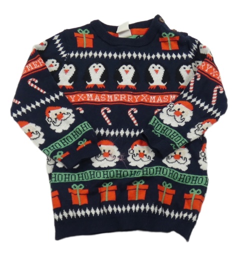 Tmavomodro-červený vzorovaný vianočný sveter H&M