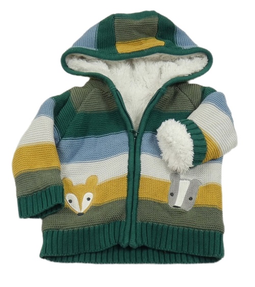 Farebně pruhovaný prepínaci zateplený sveter so zvieratkami a kapucňou Nutmeg