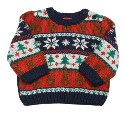 Tmavomodo-červeno-biely vianočný vzorovaný sveter